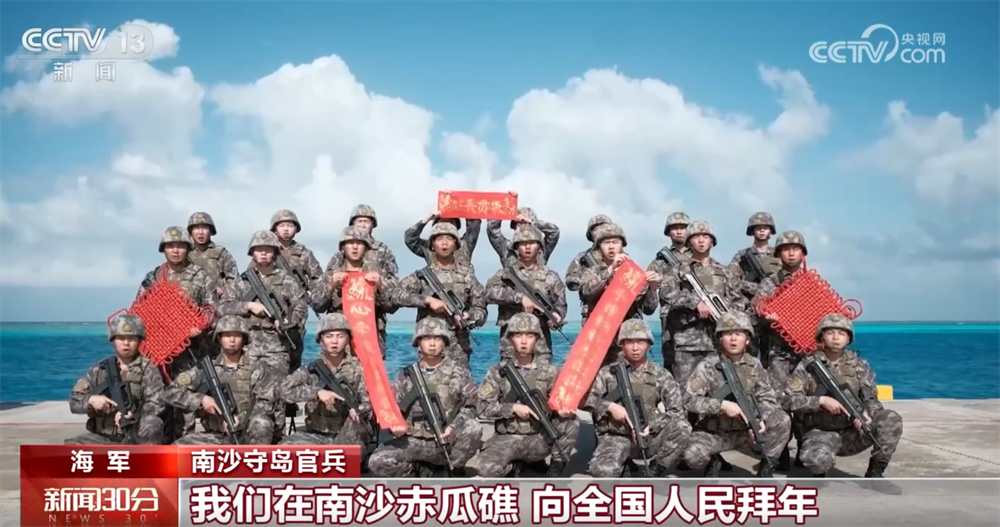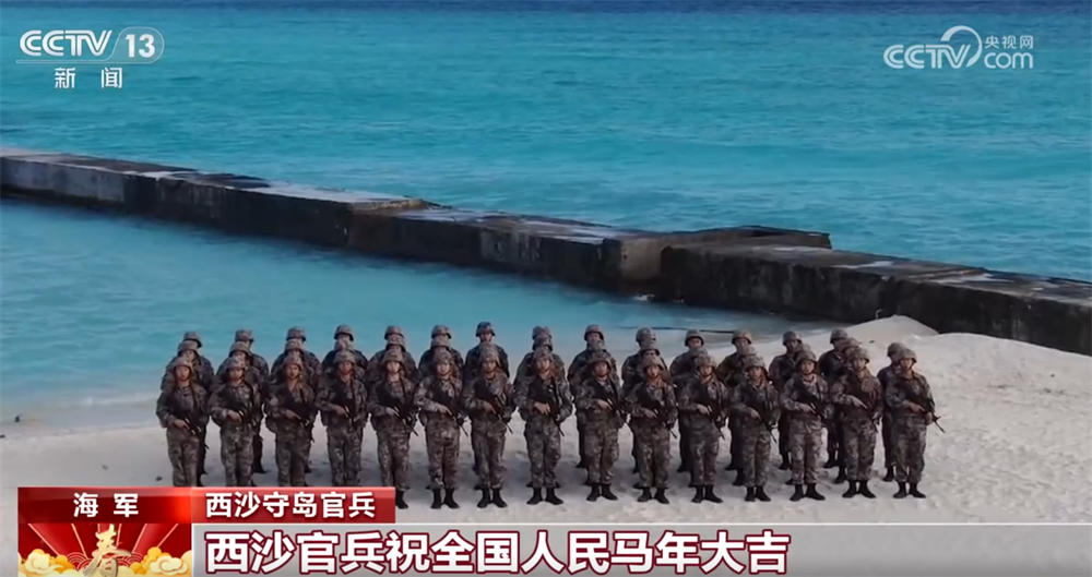 南沙守岛官兵:金戈铁马戍海疆,龙马精神铸军魂,我们在南沙赤瓜礁向全国人民拜年,祝伟大祖国在新的一年,如骏马奔腾,一往无前。
