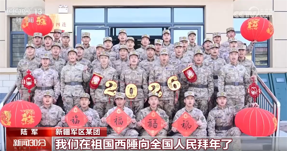 央视网消息:新春来临之际,坚守在一线的子弟兵们给全国人民送上新春祝福。在祖国的座座军营,在异国他乡的维和一线,在祖国的大江南北,官兵们把声声祝福化作实际行动,把对祖国的热爱化作强军步伐。