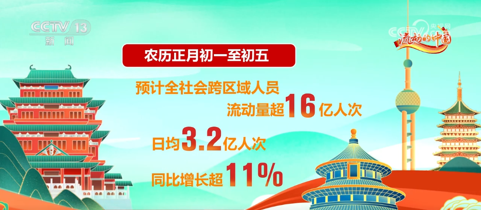 农历正月初一至初五,预计全社会跨区域人员流动量超16亿人次,日均3.2亿人次,同比增长超11%。从正月初三开始,连续三日客流规模超过了历史同期单日峰值。预计22日,跨区域人员流动量将继续攀升,达到今年春运40天的客流峰值。