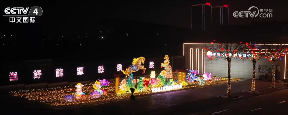春节期间,新疆克拉玛依市大街小巷张灯结彩。夜幕降临,现代光影艺术与传统文化巧妙融合,流光溢彩,洋溢着喜庆祥和的节日氛围。