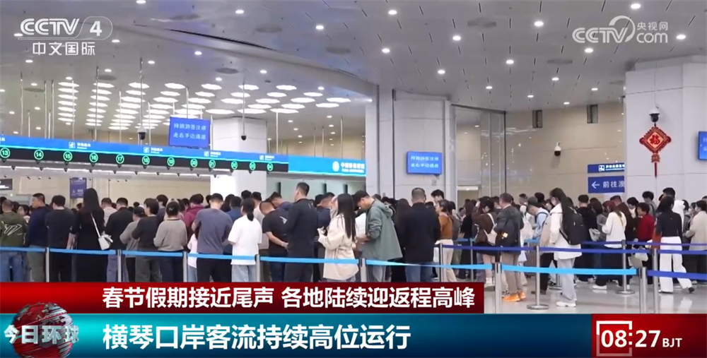 今年春节,横琴口岸客流呈现双向流动特点。据珠海边检总站横琴边检站统计,2月15日至20日,经横琴口岸出入境人员约60万人次、车辆约6万辆次,同比分别增长27.5%和46.3%,口岸通关呈现人车两旺、双向火热的态势。