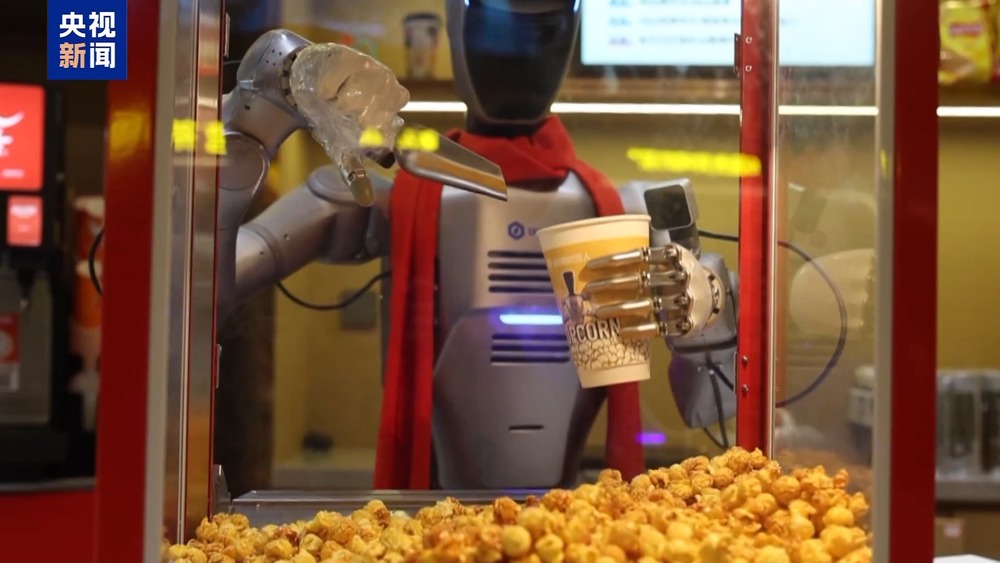 全程自主操作,动作也不慢,这台爆米花机器人已经成为影院里的“服务小能手”。