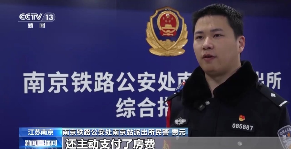 南京铁路公安处南京站派出所民警 贾元:当日,曹某拿着被害人的手机将银行卡内的钱转走后,悄悄删除了短信记录。随后曹某以其他人找自己为由先行离开,为避免被害人起疑心,还主动支付了房费。
