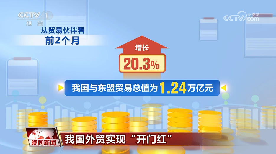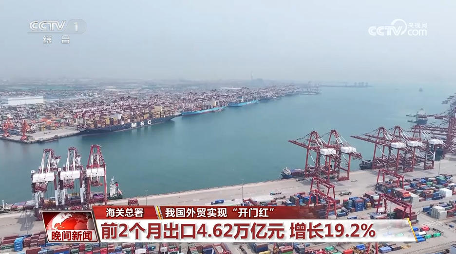 央视网消息:海关总署3月10日发布外贸数据,今年前2个月,我国货物贸易进出口同比增长18.3%,外贸开局良好。