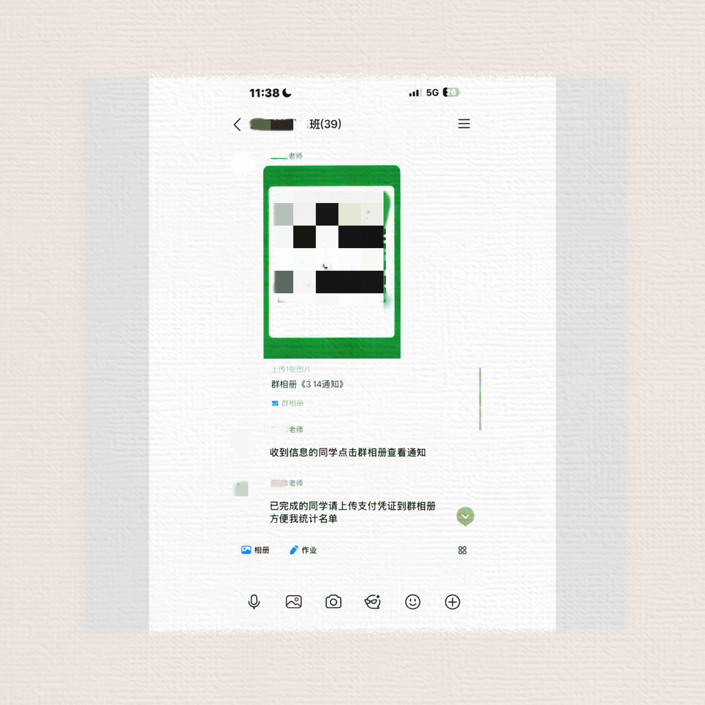 凡是在群里自称班主任、老师,以“资料费”“培训费”“教材费”等为由,让您扫码转账的,都是诈骗!