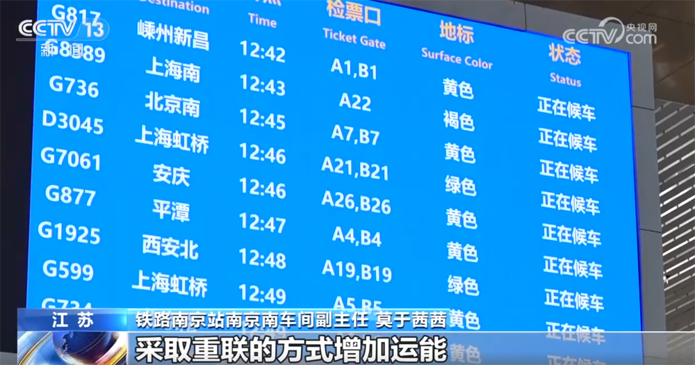 长三角铁路6日也迎来返程客流高峰,当日预计发送旅客425万人次。南京南站是长三角地区最大的铁路枢纽之一,全天预计发送旅客30.5万人次,较去年增长6.2%。车站增开到上海、徐州、合肥、杭州等热门方向的临时旅客列车25对,全天共开行389.5对旅客列车,并对部分动车组列车采取重联的方式增加运能。
