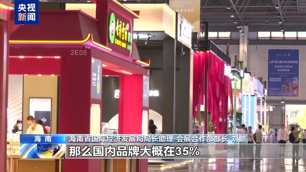 海南省国际经济发展局局长助理 会展合作部部长 刘鹏:目前来看,我们整体展品国际化率较去年提升20%,国际品牌占比大概65%,国内品牌大概35%,很多国内的品牌,产品也出海了。