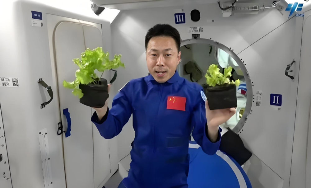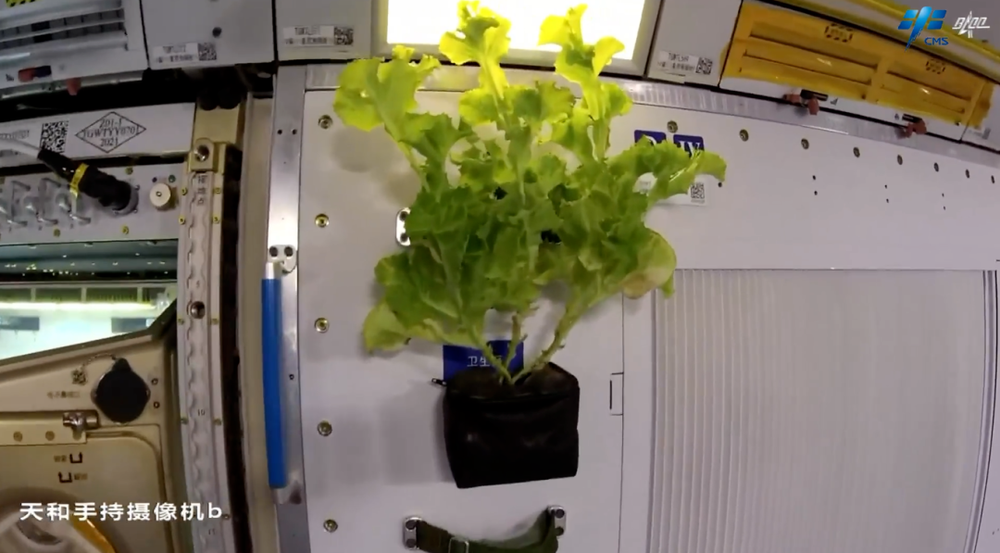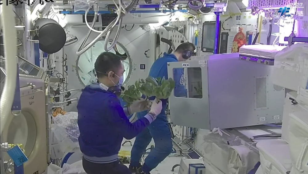 9月10日中秋节当天,乘组迎来了一份特别的“加菜”——他们携带的菜种经过近三个月的种植培养,长成了两株绿意盎然的“太空生菜”。